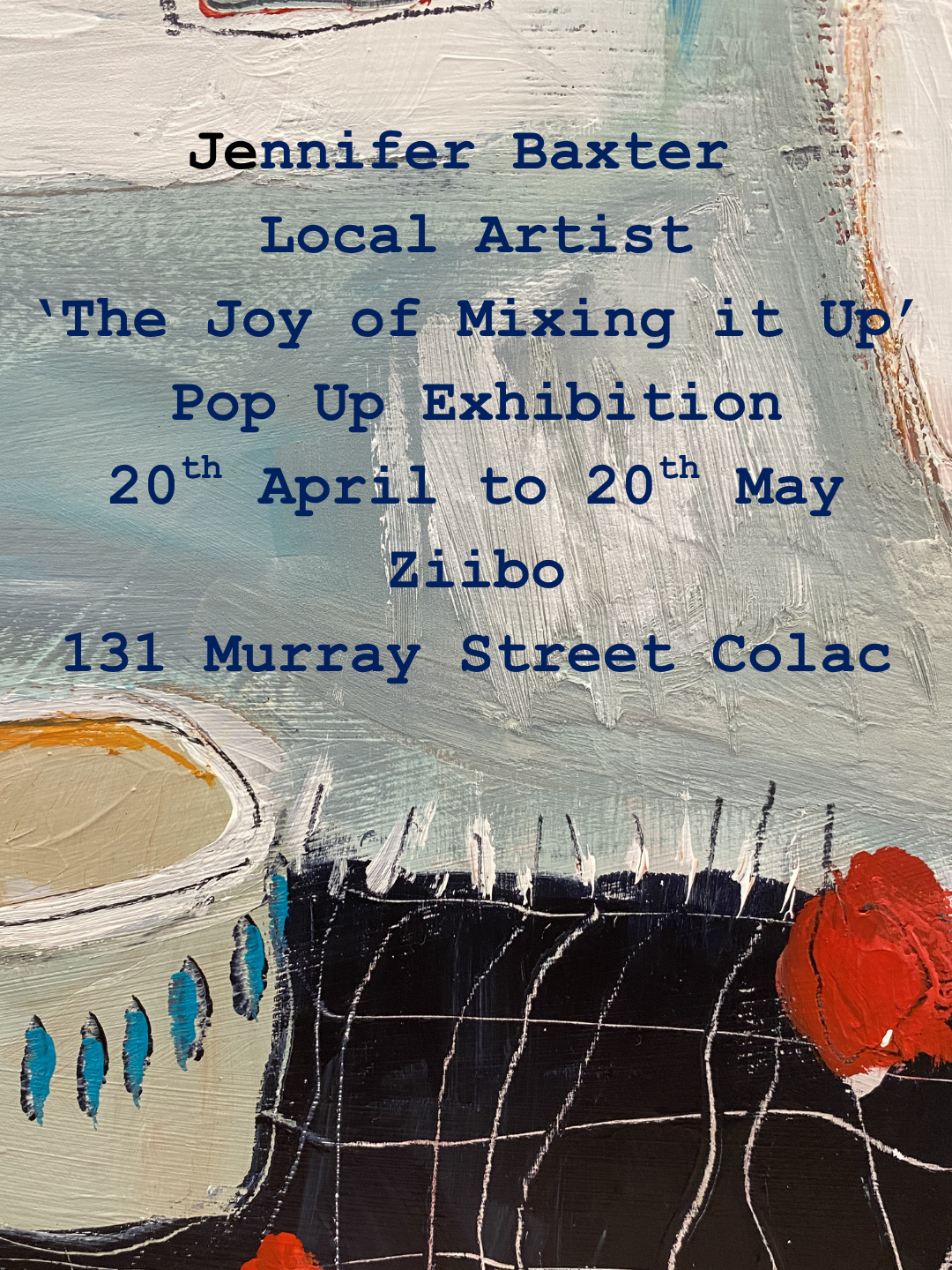 Local Artist Jennifer Baxter is a local emerging artist with an artistic journey exploring different mediums along the way. A body of 20 affordable art pieces depicting her love of the Otway Ranges, The Great Ocean Road and abstract florals and portraits.