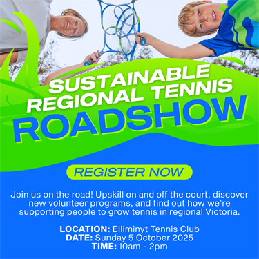 Participants are encouraged to register for the event to go in the draw to win 2 x Australian Open women’s semi final tickets through this link Sustainable Regional Tennis Roadshow - Registration - Airtable