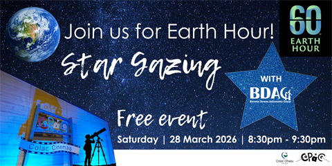 Join us and celebrate Earth Hour with a free family fun star gazing experience outside COPACC!